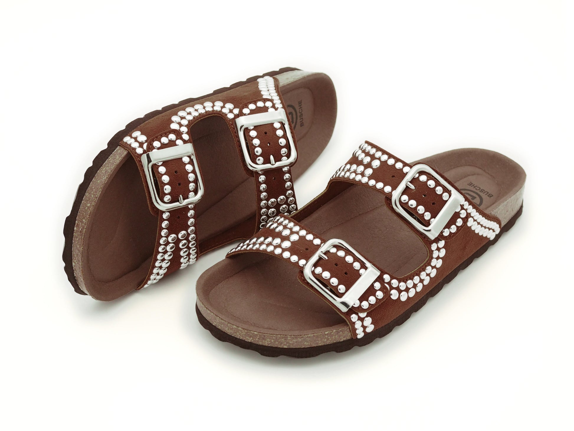 Busche Zweischnallensandale aus Leder mit Nieten für unvergessliche Tage.