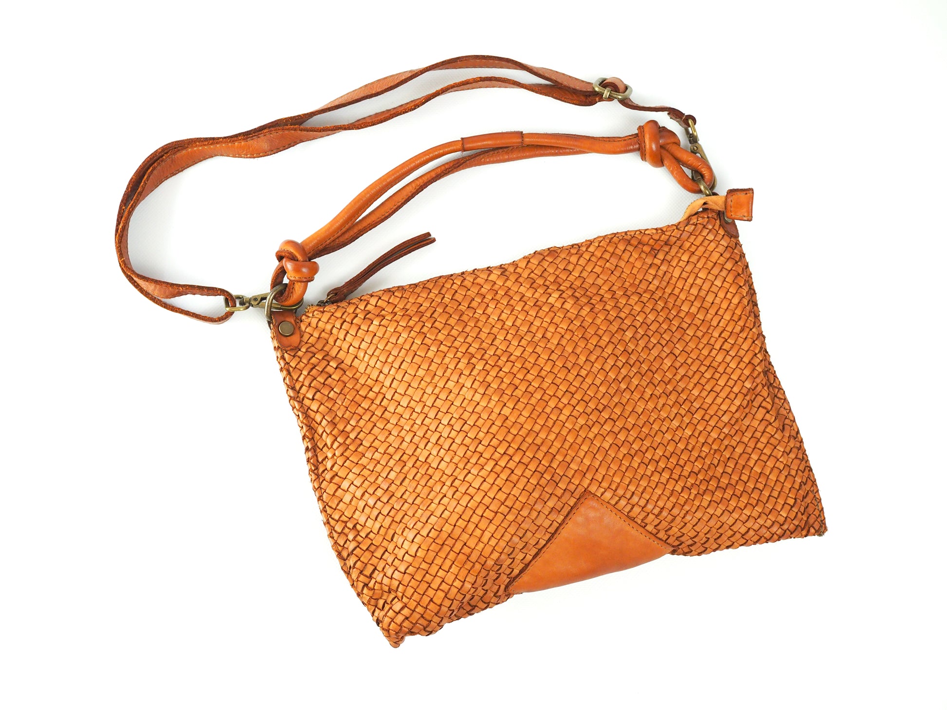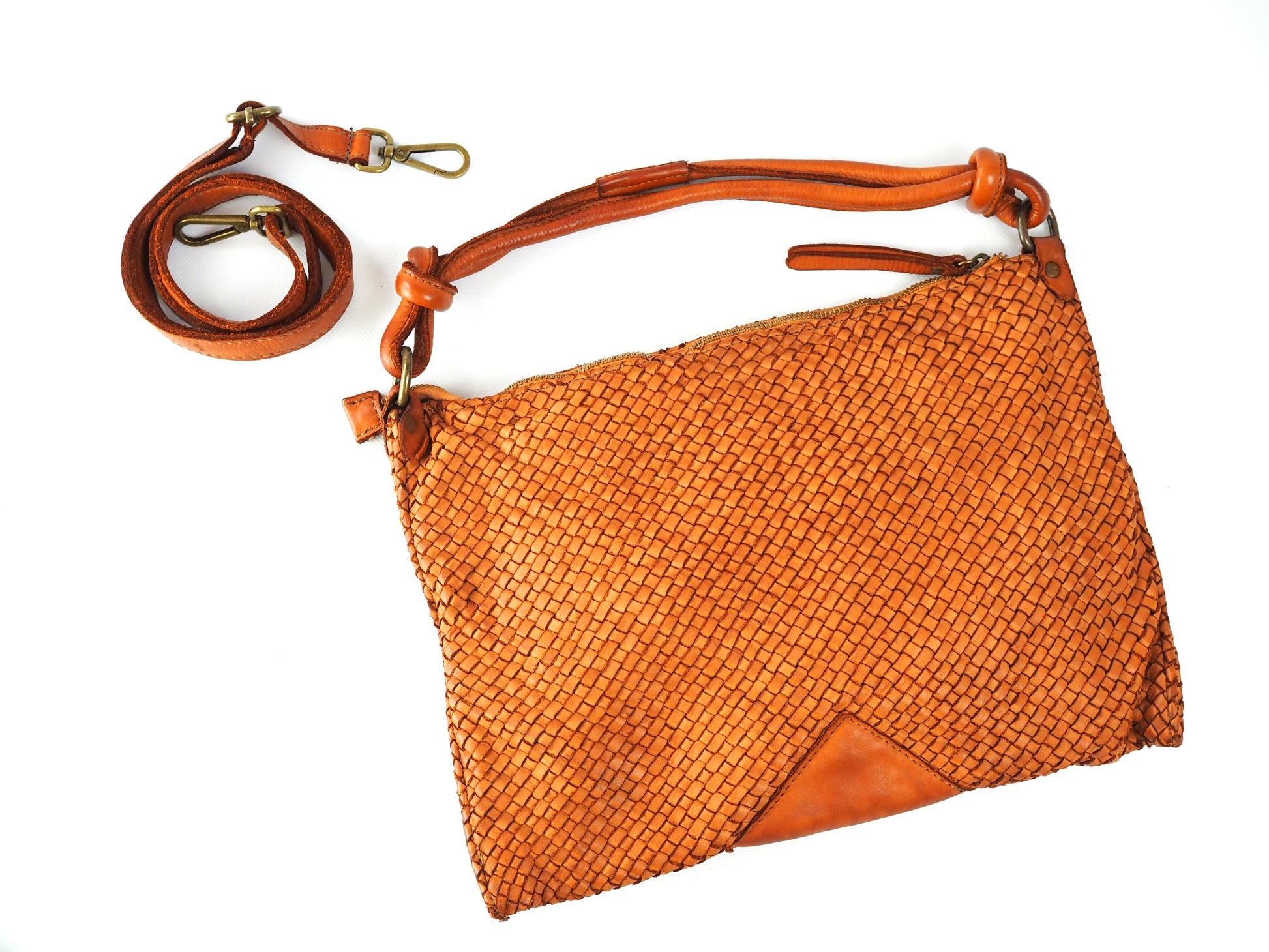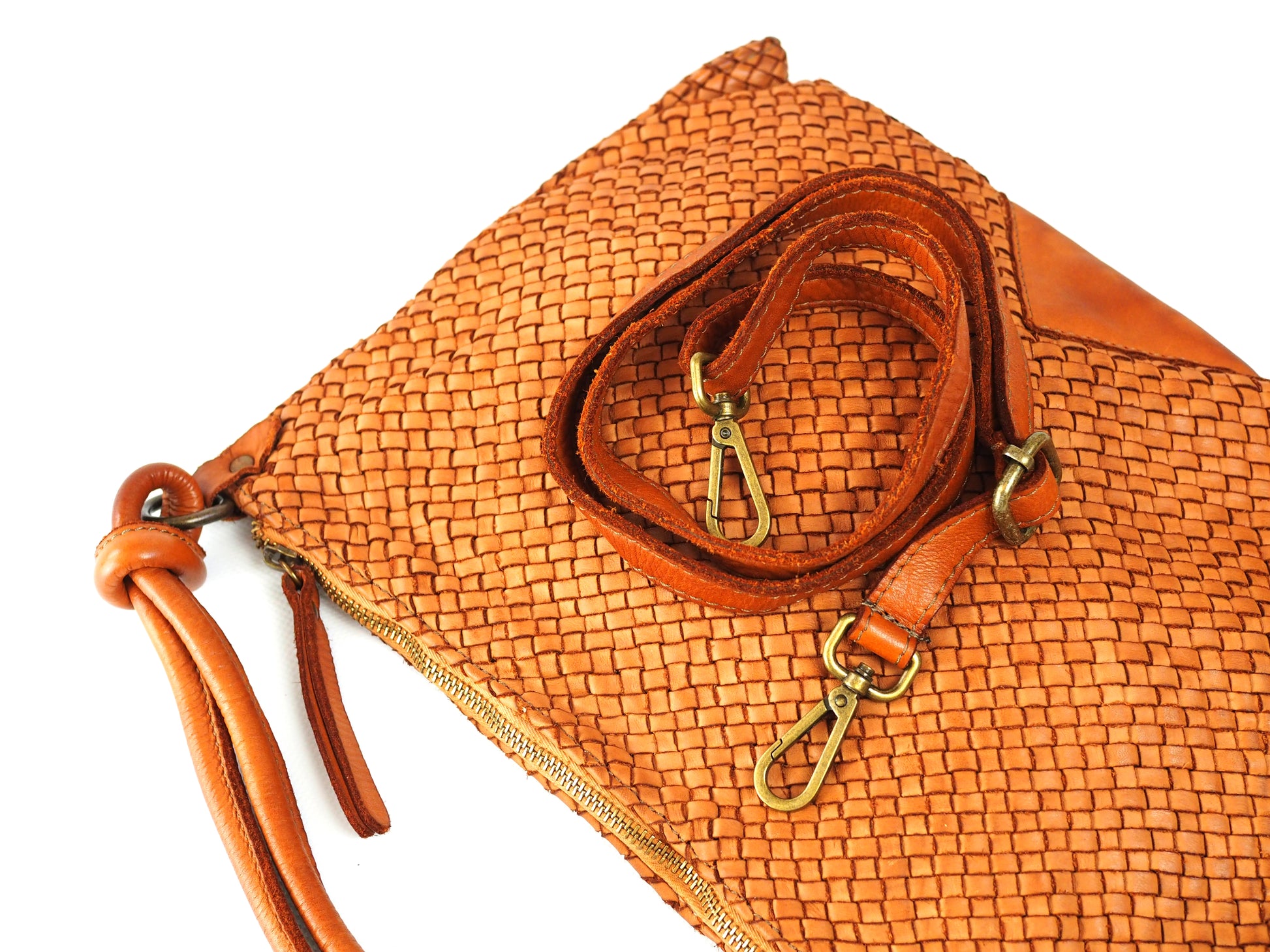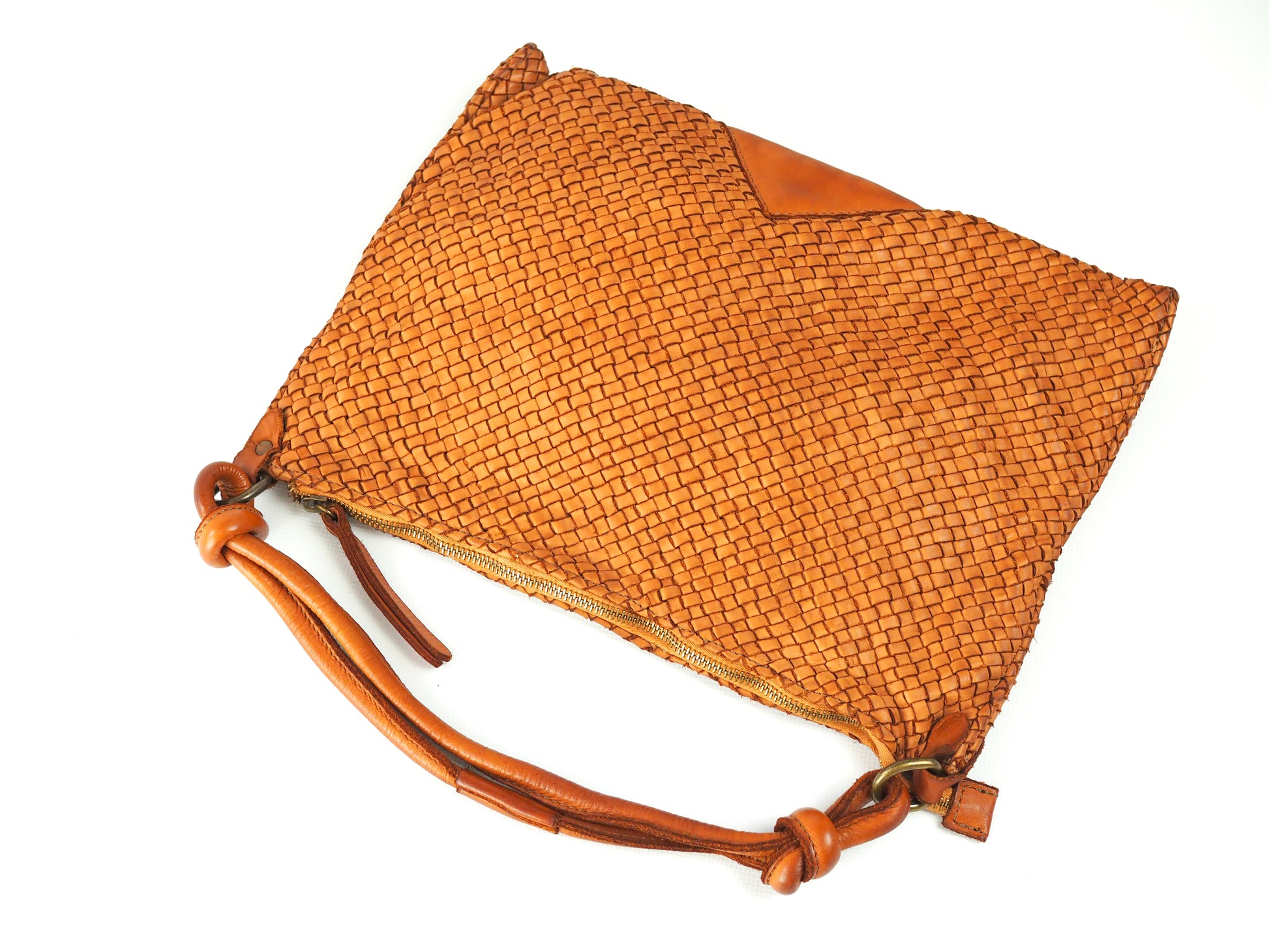 Die Tasche Tarta in der warmen Farbe Cuero überzeugt mit ihrem eleganten Design aus hochwertigem, geflochtenem Leder. Mit kompakten Maßen von 36 x 25 cm ist sie der ideale Begleiter für den Alltag – stilvoll, leicht und dennoch geräumig genug für das Wesentliche.
