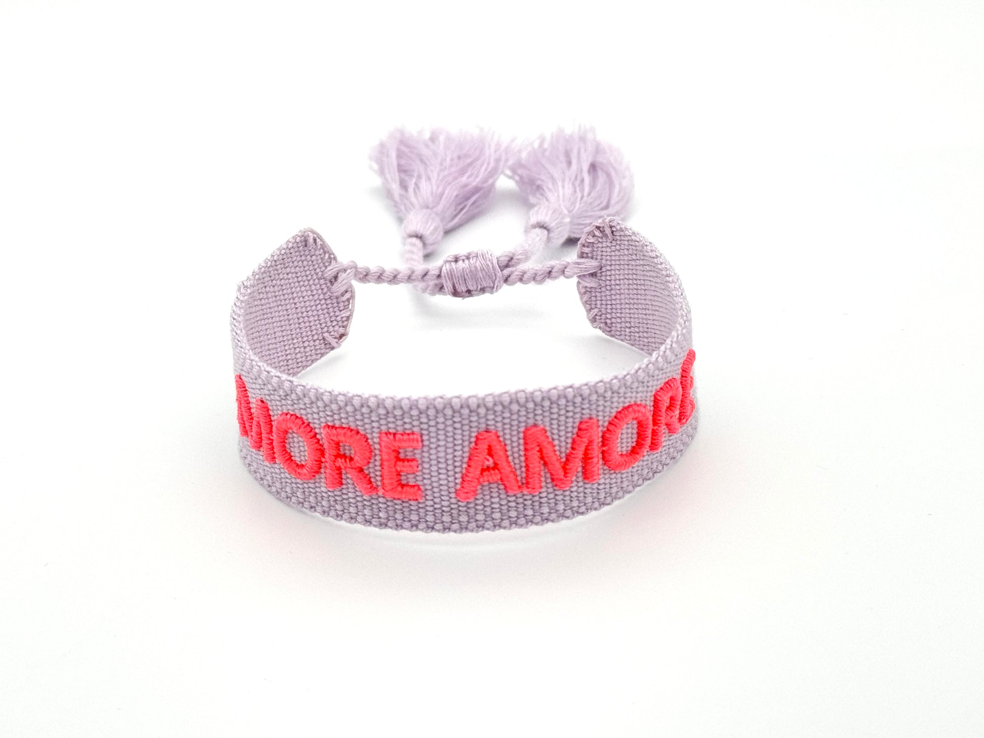Das Armband ist aus weichem, robustem Stoff gefertigt, angenehm zu tragen und in der Größe verstellbar. Der eingewobene Schriftzug „More Amore“ verleiht deinem Look eine persönliche Note – dezent, aber wirkungsvoll.